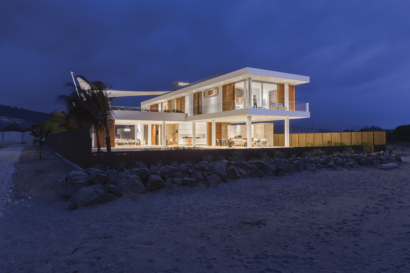 El proyecto surge de la necesidad de una pareja de extranjeros que busca cambiar su estilo de vida y que encuentra en las costas de Puerto Cayo – Ecuador, el lugar perfecto para lograrlo. En el lote de 1.250m2, totalmente privilegiado por su ubicación frente al mar, se implanta la casa de tal manera que responde a la geografía natural del perfil costanero.