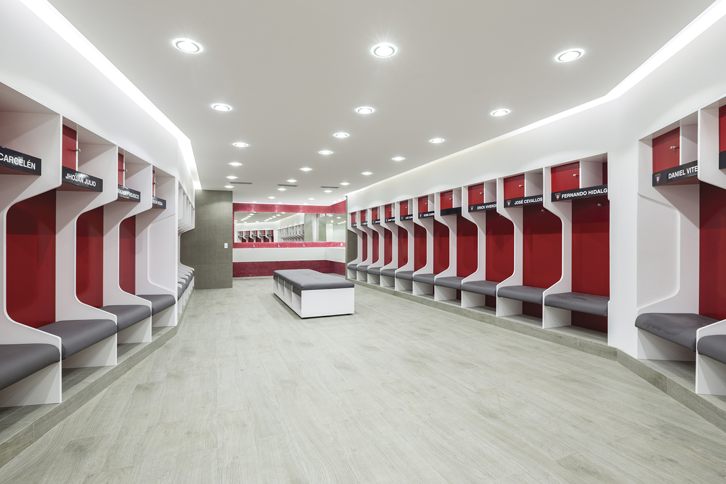 Actualmente estamos colaborando con Liga Deportiva Universitaria en varios proyectos. Llevamos a cabo la remodelación integral del Centro de Alto Rendimiento ubicado en Pomasqui, donde ya hemos completado algunas zonas como el camerino de los jugadores. También estamos a cargo de la construcción de los ascensores en el estadio Casa Blanca, un proyecto singular, concebido como un elemento de luz, que podría llegar a convertirse en un hito importante del paisaje urbano.
