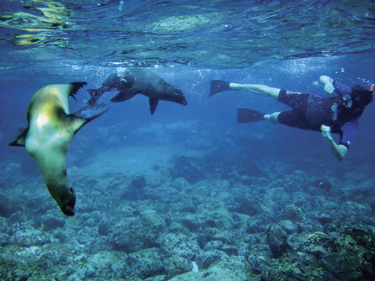 You step off the yacht at the east end of the island and then walk up a trail that provides incredible coastal views. This is the only place in the Islands where you will find three species of boobies together, two species of frigate birds, and a colony of sea lion bachelors. It is a unique experience.