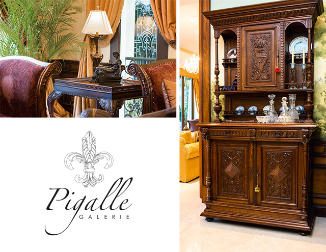 Galerie Pigalle ofrece exclusividad en muebles, lámparas y accesorios. Cuenta con la mejor selección de mobiliario. Todo es importado desde Europa y los muebles antiguos son restaurados en su propio taller.