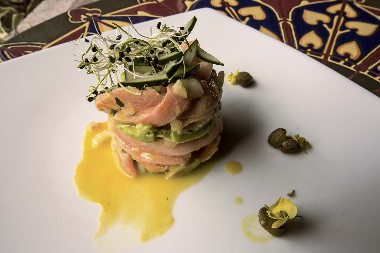 In his traditional attire, José, an award-winning Chef and gourmet expert from Spain welcomes us. The conversation takes us through a fantastic description of his culinary recipes, all of which have been created in different parts of the world but speak about his love for Ecuador and its gastronomy. Once we are comfortably seated in front of a magnificent fireplace in a cozy spot at the restaurant, he says, “I am going to prepare a combination of my culinary art and will be providing with wine acordinly, so please enjoy and let me take care of the rest”.