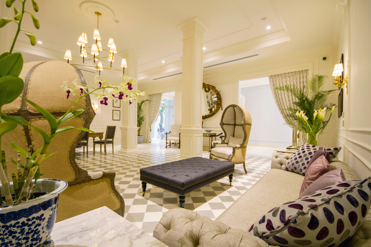 En el salón se recrean varios ambientes con estilo residencial para que los huéspedes se sientan como en casa. Se trata de salas con muebles de estilo inglés, con tapices en tonos neutrales y algo de cuero. Cuadros, adornos y antigüedades evocan un ambiente acogedor, contrastados con ciertos toques modernos y de orden práctico. Es determinante el diseño de la iluminación y la música que acompaña en cada rincón.