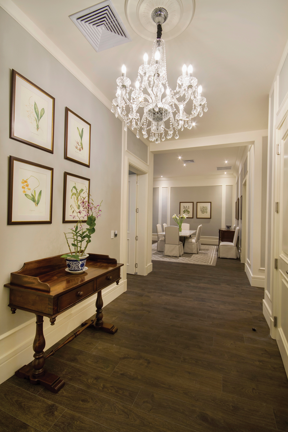 La decoración es de tipo republicano, con una mixtura de toque francés, inglés, barroco y español, todos juntos como acentos en un mismo espacio. El talento de Julio plasmó un elegante concepto complementado con una decoración tropical que hace alusión al clima y al entorno. Los diseñadores de este proyecto se inspiraron en el estilo colonial británico, plasmado en las casas inglesas ubicadas en climas tropicales, alcanzando un efecto fabuloso, colorido, donde se utilizan estampados y elementos que evocan flora y fauna locales.