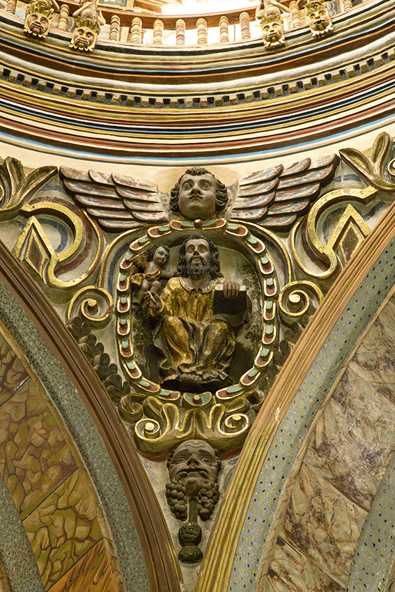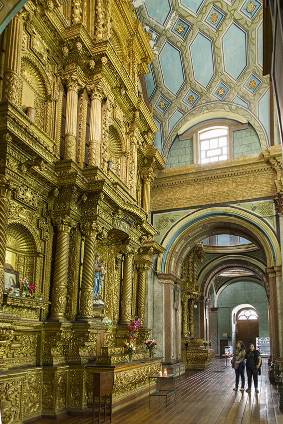 Una vez que se ha recorrido el templo, la mirada queda absorta ante una de las piezas escultóricas más hermosas y ricas de la escuela quiteña. De la mano y el genio de Bernardo de Legarda, El Sagrario heredó una mampara confeccionada, esculpida y dorada por el maestro y su taller en 1747.