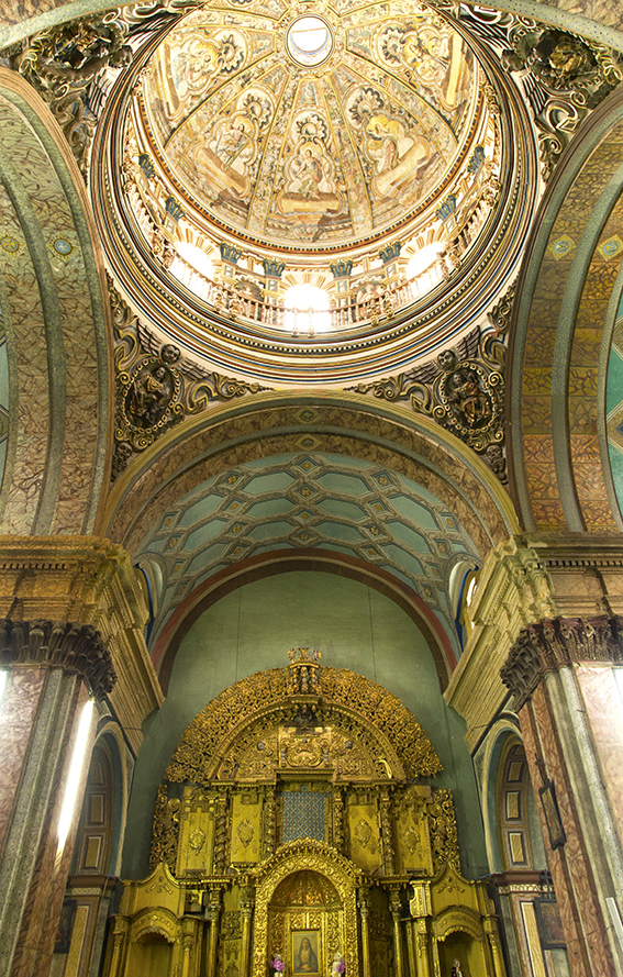 Impresiona a la vista la cúpula de media naranja que se encuentra sobre el crucero y que aporta una abundante luminosidad gracias a las ocho grandes ventanas dispuestas alrededor de la estructura circular que se complementa con otra pequeña cúpula o linterna de ocho ventanas de menor tamaño, en la parte más alta del domo. Las paredes de esta cúpula fueron decoradas con imágenes de santos y arcángeles, pintadas por Francisco Albán reconocido artista de la época. En su base, cuenta con cuatro pechinas decoradas con esculturas en madera de los evangelistas.