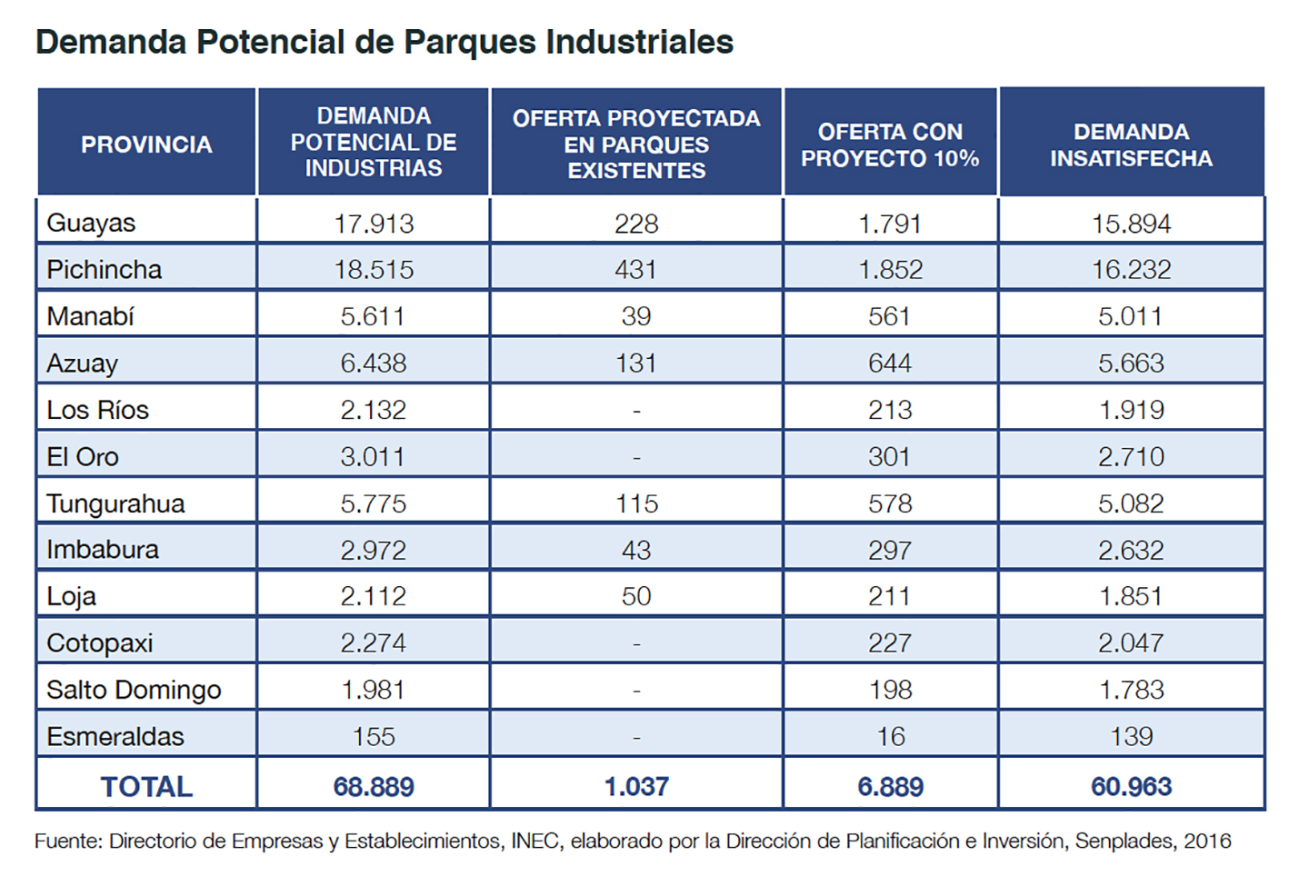 [1] Secretaría Nacional de Planificación y Desarrollo, “Proyecto Fomento al Desarrollo Territorial de Parques Industriales en el Ecuador”, Quito, 2016