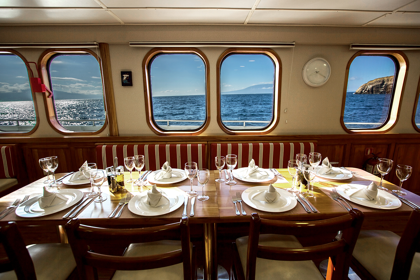 El primer plato de cada comida se sirvió en la mesa, seguido de un abundante despliegue de una variedad de alimentos, servidos al estilo buffet, para que todos los pasajeros se satisfagan en conformidad a sus preferencias, generando un maravilloso ambiente de convivencia que todos los a bordo disfrutamos ampliamente durante nuestra estadía.