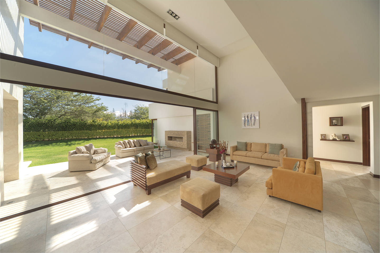 La Casa Cayambe es una residencia campestre que fue diseñada como vivienda vacacional y está orientada a la relación que existe con la naturaleza. La cubierta inclinada fue pensada con el objeto de dar énfasis a la vista que está dirigida hacia el volcán Cayambe enmarcado entre dos árboles. La Casa J7 – J8 fue construida en un terreno con una pendiente irregular, y se la diseñó con el fin de integrar dos volúmenes que se destacan por su funcionalidad como el área social y el área familiar respectivamente. Estos volúmenes se vinculan por una circulación acristalada hacia el jardín frontal y el posterior. En el área social, se procuró la relación con el jardín a través de un porche donde funcionan al exterior una sala, comedor y parrilla.