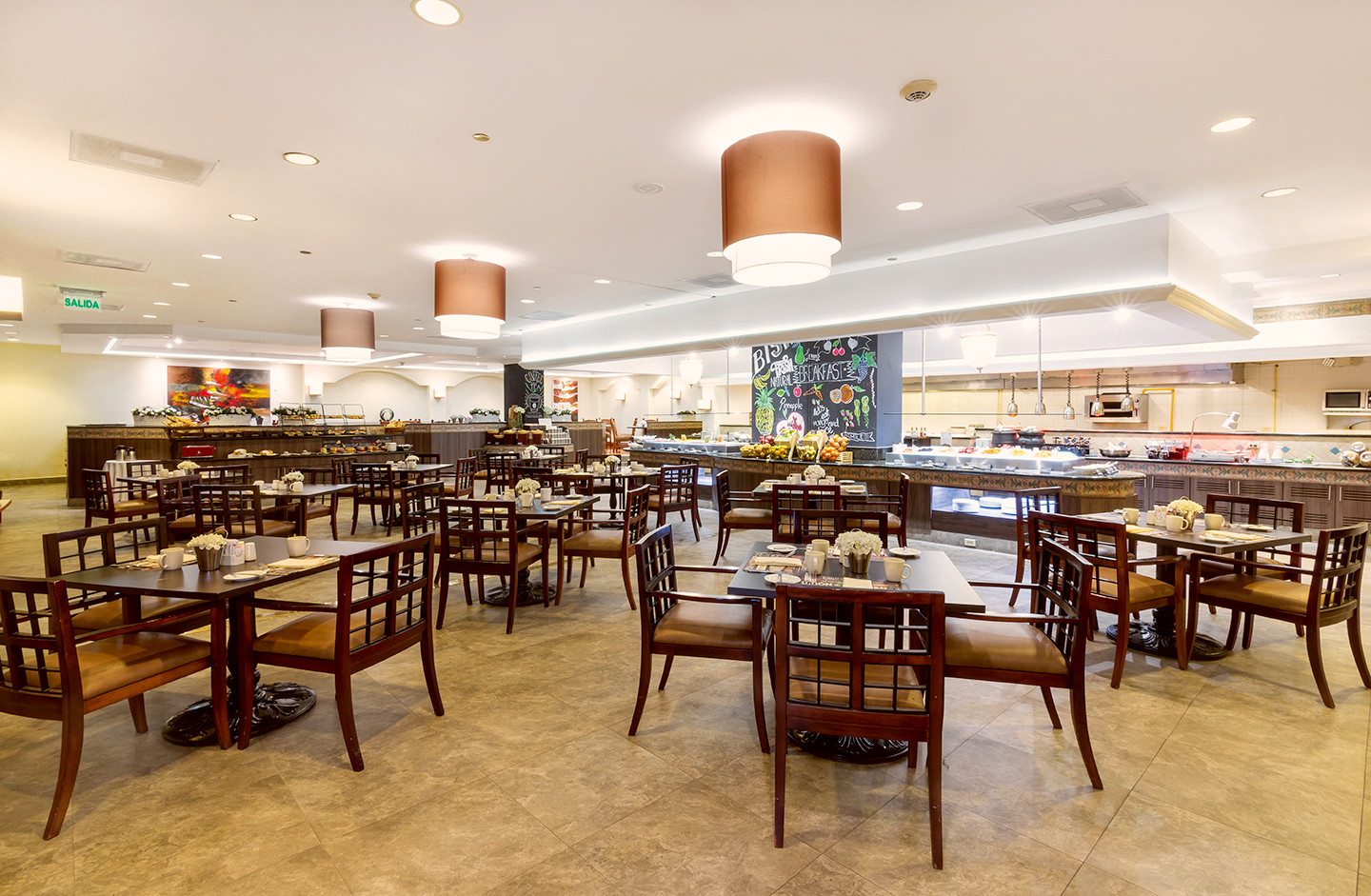 Este espacio para disfrutar en familia y con amigos además atiende al medio día con opciones para el almuerzo que incluyen preparaciones de los platos más destacados de la cocina latina, finamente elaborados con ingredientes cuidadosamente seleccionados. Mención aparte merecen las maravillosas vistas desde este espacio hacia la piscina y jardines del hotel, que matizan el ambiente con aires de frescura.
