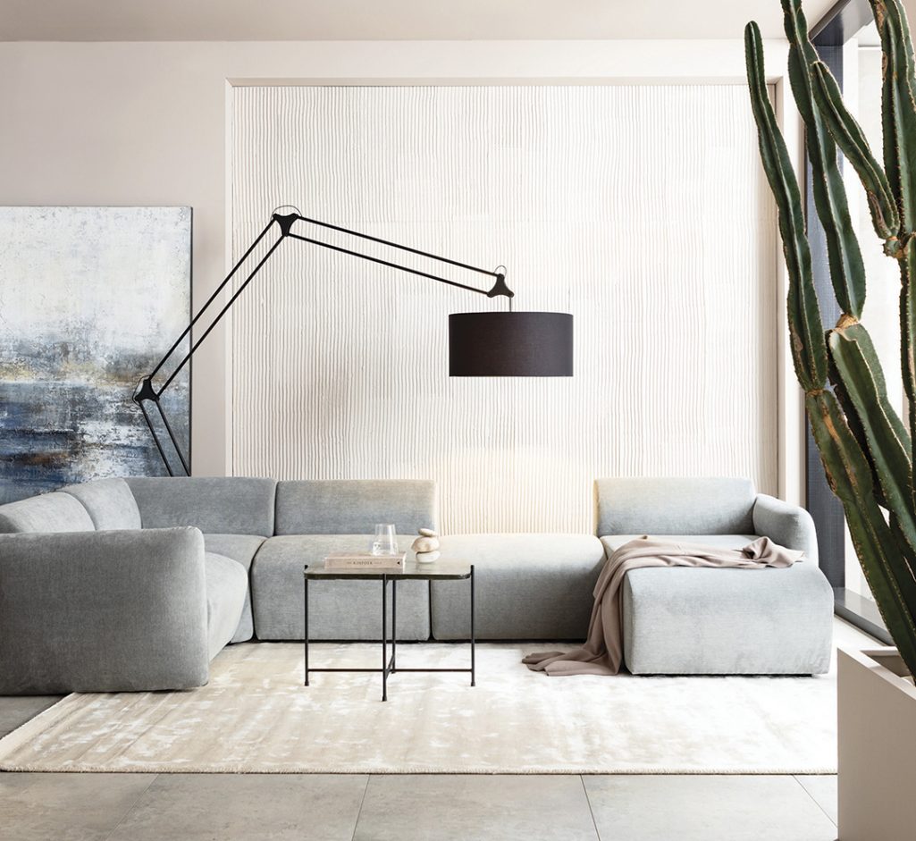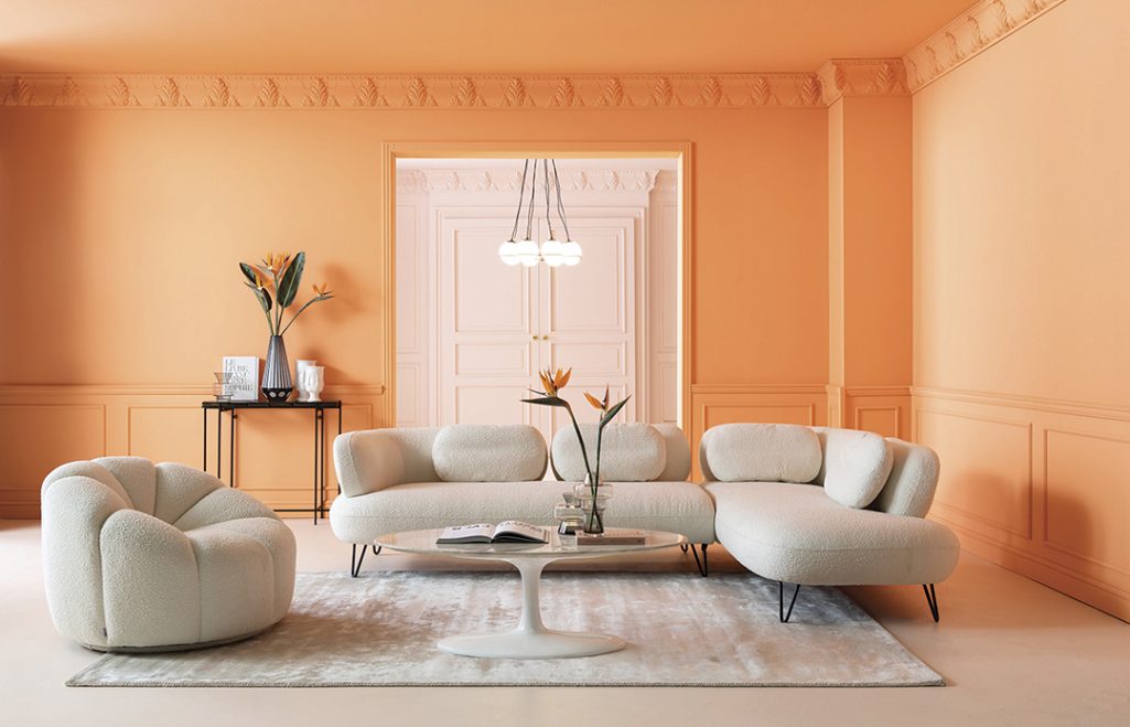 Las telas también forman parte de estos últimos hitos de tendencia, como lo refleja la colección Peppo, que muestra telas afelpadas como boucle que da una atmósfera que evoca la comodidad. Sin duda el tapiz está en su punto de moda. Superficies estructuradas y acogedoras se extienden sobre muebles, sofás y sillones que se presentan en formas distintivas y orgánicas. El color de elección: ¡crema!
