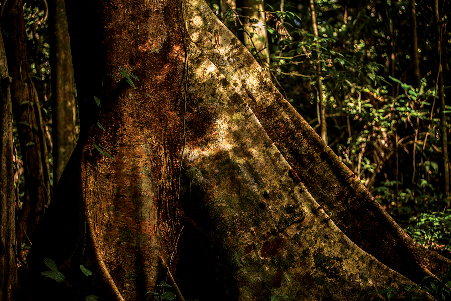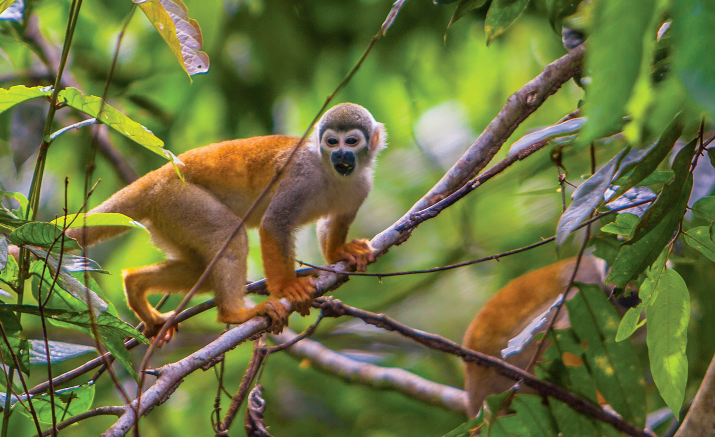 Momentos antes de llegar al mítico paraje del Lodge Kapawi, el guía Achuar nos pide silencio y nos muestra una discreta silueta entre la selva, que cuando al moverse y para el asombro de todos, nos damos cuenta que es un jaguar adulto que cruza el río a nado, e inmediatamente después en la otra orilla persigue a su presa, un sajino que se encontraba en compañía de otros de su especie haciendo lo que los animales de estos míticos parajes realizan.