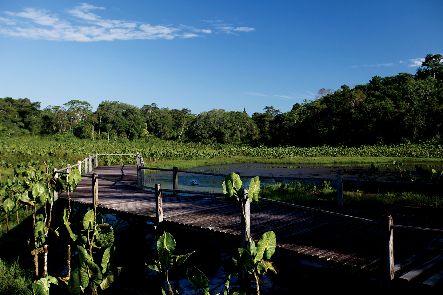 Kapawi Lodge cuenta con unas pasarelas de acceso que nos llevan desde el embarcadero a las distintas cabañas, construidas siguiendo las técnicas ancestrales de construcción de la comunidad Achuar. En la parte central del Lodge está ubicado el restaurante, donde se sirven deliciosos platillos preparados con productos de la región; además el bien surtido bar donde se puede disfrutar de su coctel favorito; y la sala general donde se siente un cálido y auspicioso ambiente de convivencia, que nos permite disfrutar de largas conversaciones con personas de todo el mundo. Kapawi Lodge es miembro de Exclusive Hotels and Haciendas of Ecuador www.ehhec.com.