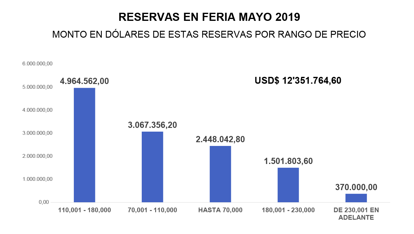 Para completar el análisis, en el Gráfico No. 8 presentamos el rango de precios en el que se ubican los proyectos que se reservaron en Feria. Por otro lado, la cantidad de dólares que se invirtió en cada rango consta en el Gráfico No. 9. Esta determinación nos deja ver en qué estrato socioeconómico se aglutina la capacidad de compra de la mayor parte de la demanda.