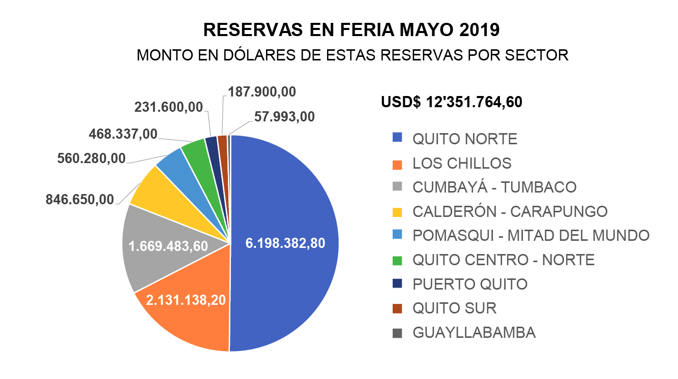 En el Gráfico No. 4 se desglosan esos 123 proyectos según su ubicación. La zona que predomina es Quito Norte, seguida por el Valle de Los Chillos y Calderón. Sumados sus valores, el total de negociaciones cerradas en Feria fue de $12.351.764,60.
