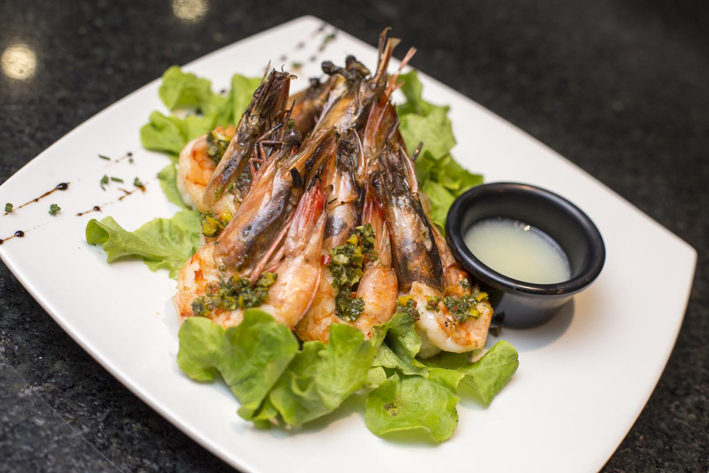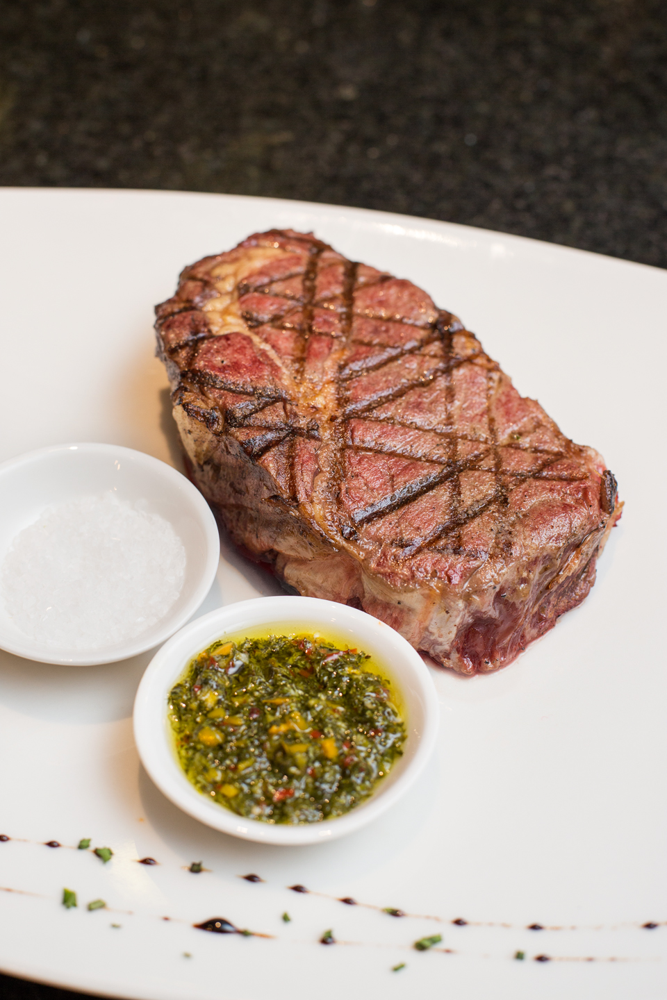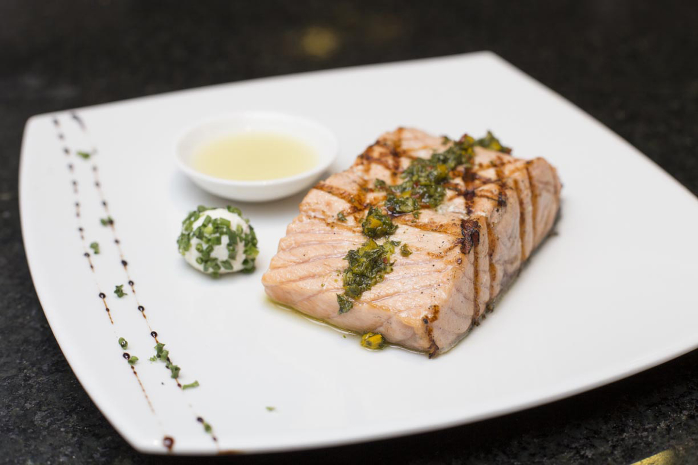 Mi elección fue Navarro Correas, Malbec, de Argentina, que tuve el gusto de degustar antes de que la copa fuese servida. El atún rojo servido con mayonesa de jengibre y ensalada de algas fue mi opción para empezar. La complementé con el lomo fino que llega a mi mesa perfectamente cocido a su punto, acompañado de un delicioso chimichurri que disfruto al máximo.
