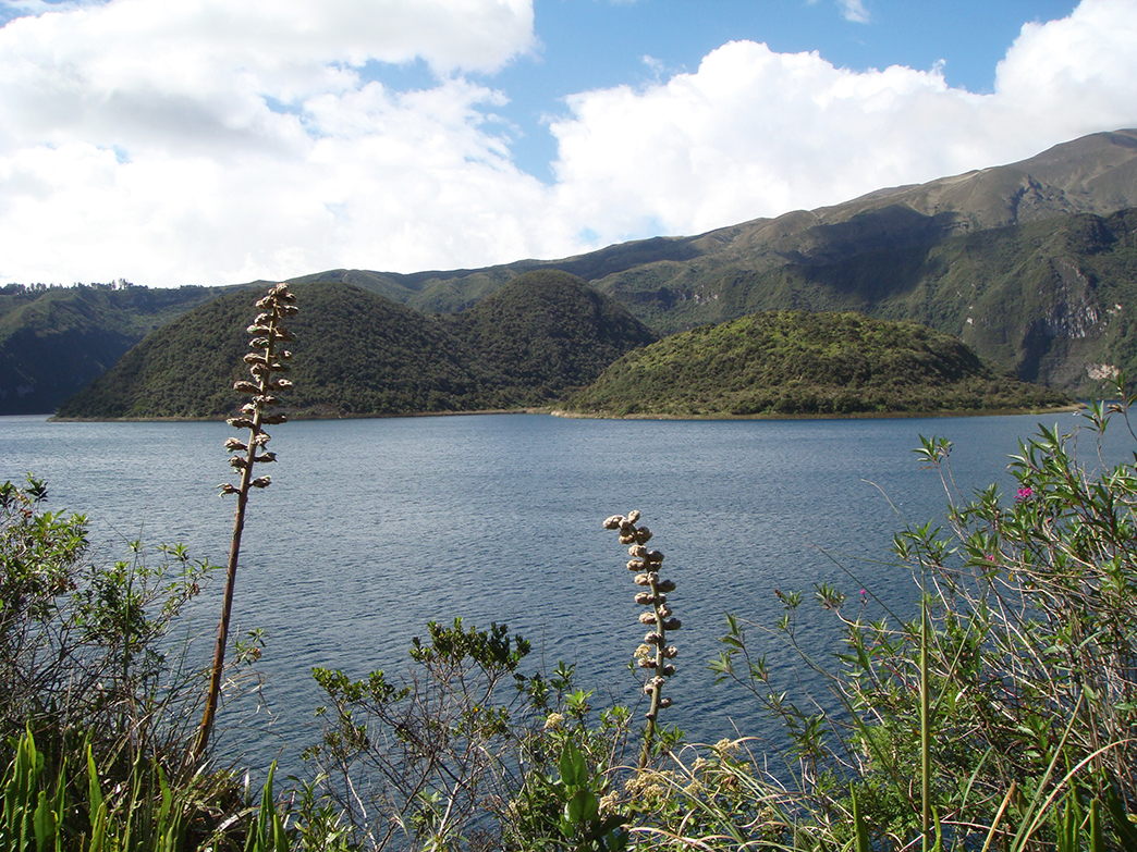 Esta majestuosa cocha de aguas cristalinas y de color azul cardenillo es el resultado de la erupción del Volcán Cotacachi, sucedidaa hace aproximadamente 3.000 años. Está a 3.068m de altitud sobre el nivel del mar. En su centro se sitúan dos islotes conocidos como Yerovi y Teodoro Wolf, que están separados por el “canal de los ensueños”.