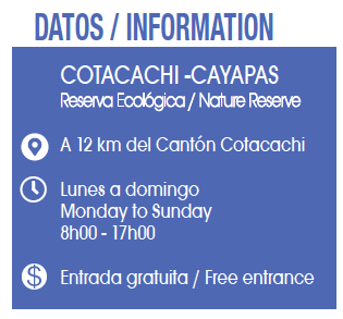 La Reserva Ecológica Cotacachi-Cayapas está abierta para todo público desde las 8h00 hasta las 17h00, y la entrada es gratuita aunque es necesario registrarse con el guardia en la garita principal. En la entrada se exhibe una variedad de artesanías y tejidos hechos en lana como bufandas, gorros, guantes y ponchos. Acampar no está permitido.