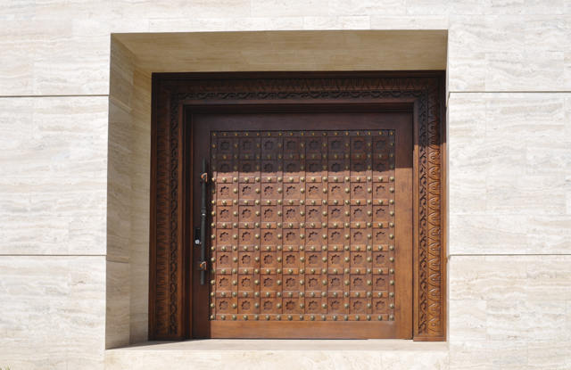 La puerta de madera con botones de bronce que lo aderezan es una proeza de la ebanistería realizada con lenguaje contemporáneo.