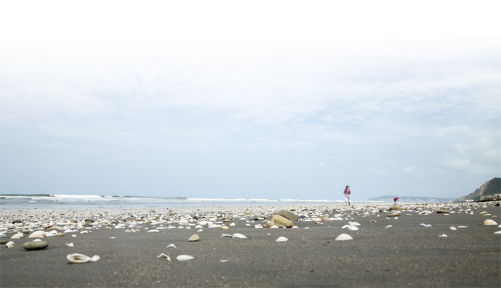 We were impressed by its seemingly never ending beaches. We arrived at noon and settled down in Bellavista beach, quite broad, peaceful, clean and safe. Nature´s decorations are scattered seashells, in every shape and color. The ocean is lukewarm, so nobody stays out of the water. After a dip, we walked the 3 mile length (5 kilometers) of the beach, followed by some fishermen´s dogs who decided to join our party.