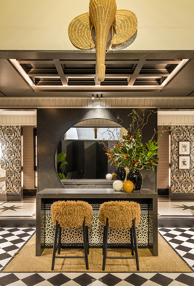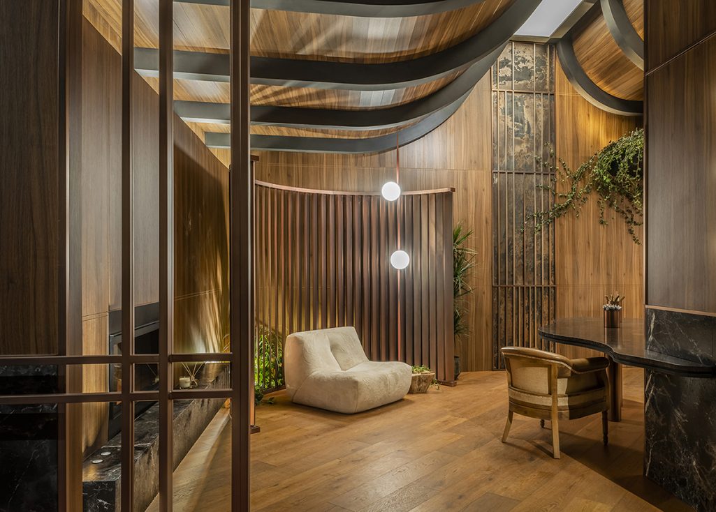 Las tendencias de lujo y sofisticación con toques de Art Déco se reflejaron en espacios como el Doré Lifestyle de Beatriz Silveira, que demostró su maestría y sofisticación incorporando elementos neutros y cálidos típicos de este estilo que irrumpe en el mercado actual. La innovación acústica y diseño creativo tuvo su escenario en el Beatbar de Alejandra Pombo, quien ofreció una experiencia sensorial única, fusionando diseño creativo con innovación acústica. La paleta de colores granates y verdes vistieron de elegancia y misterio al ambiente.