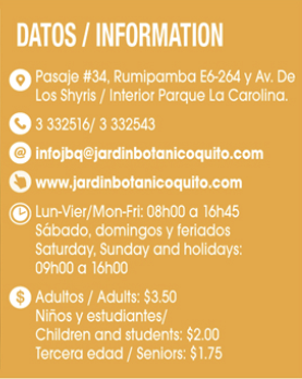 El Parque La Carolina, además de ser uno los principales pulmones de la capital, también es destino para deportistas, familias, turistas, niños y personas de la tercera edad. Las actividades que allí se realizan son innumerables, pero hay una visita que es obligatoria para los quiteños; y que para los turistas, tanto locales como foráneos, es una oportunidad única para conocer sobre la maravillosa biodiversidad de la sierra ecuatoriana.