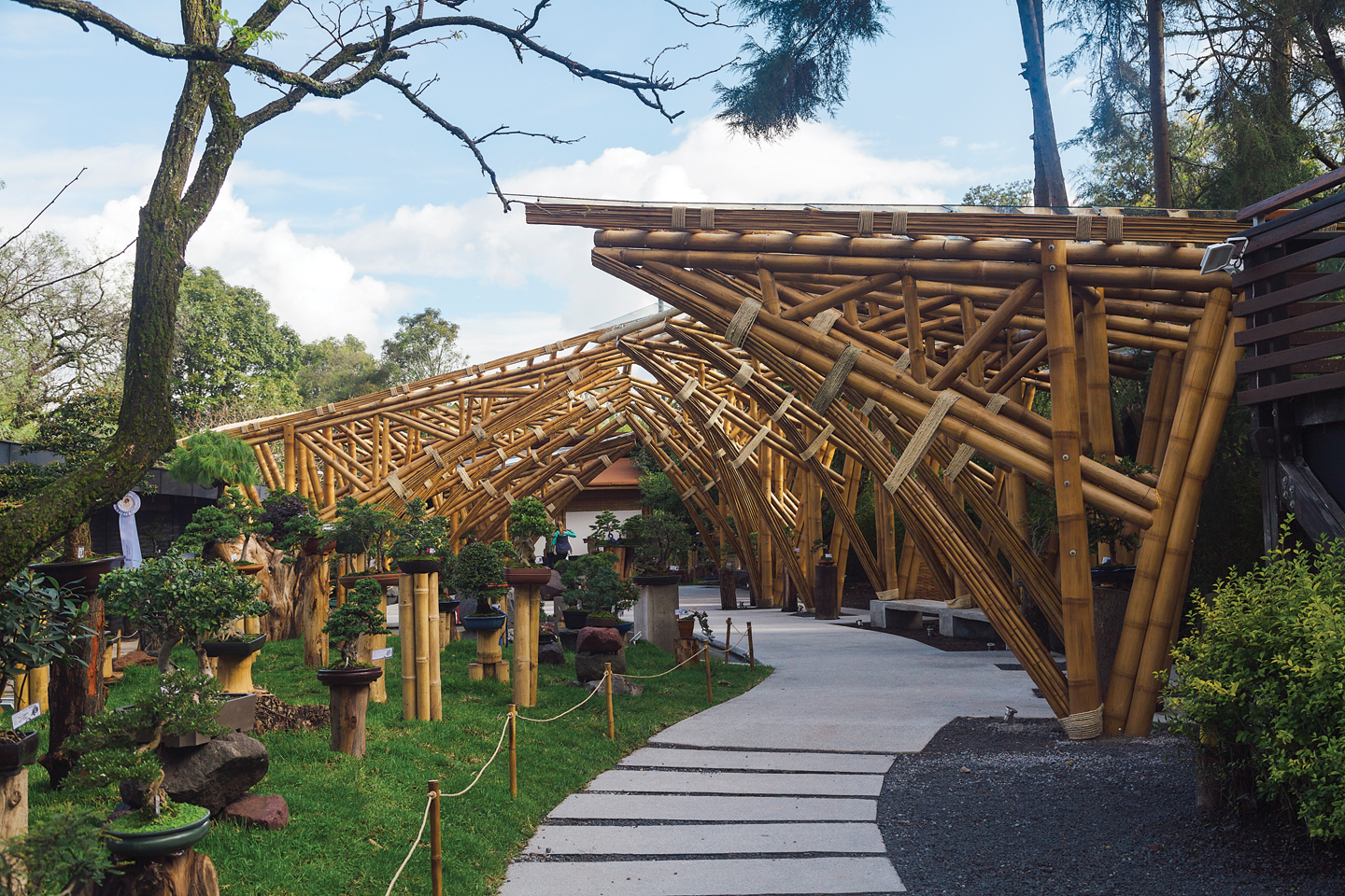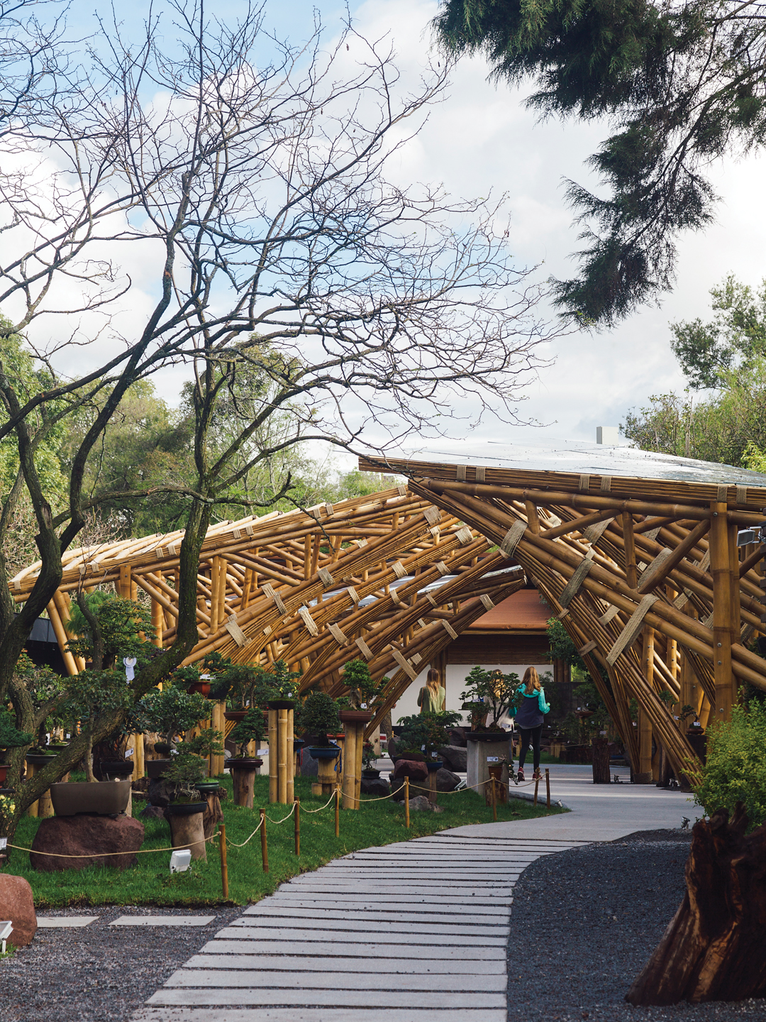 Para cerrar con broche de oro visitamos el Museo del Bonsái, atractivo que fue recientemente inaugurado gracias al aporte de Ruthie de Horvarth y a la gestión administrativa de Carolina Jijón. Es el primer museo vivo del país, y atrae tanto por la muestra de pequeños árboles que presenta, cuanto por la impresionante estructura de bambú que los alberga. La arquitectura de este espacio es de autoría de las arquitectas ecuatorianas Macarena y Sofía Chiriboga, de Studio M+S. Esta flamante colección abrió sus puertas en mayo, y desde el 1 de julio se consagrará como una exhibición permanente. Anteriormente ya se había presentado estas especies, pero ahora se ha juntado 120 árboles que despliegan la magnificencia de este arte botánico.