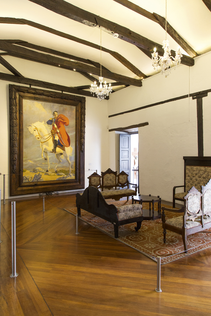 Durante la colonia y a principios de la época republicana, la primera planta era ocupada por los sirvientes; la segunda planta estaba destinada a la familia, y actualmente la exhibición del museo mantiene esta misma lógica. Funcionan en el primer piso la administración, la Sala de próceres, un Salón auditorio de uso múltiple, la Sala de armas y la Sala de imagen institucional. En la planta alta, el visitante recorre la alcoba, una sala de visitas, el salón principal, el oratorio, el comedor, la cocina, un comedor de diario; y atravesando un corredor hacia atrás se llega a un horno de pan y a una bodega.