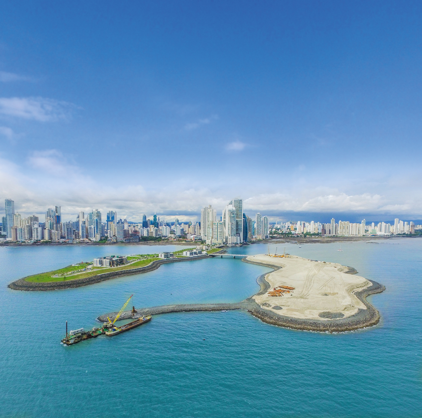 Entre ellos, Delft Hydraulics (Deltares), que recabó la información necesaria para la edificación de las islas por medio de un estudio al Océano Pacífico panameño, en lo que se refirió a las corrientes marinas y a los datos meteorológicos en alta mar. La empresa Royal Boskalis Westminster trabajó en los planos de construcción, dragado, transporte e instalación de rocas y arena; HDR diseñó las escolleras, y Berger Abam estuvo a cargo de la asesoría técnica. URS Corporation se encargó del seguimiento ambiental. La conjunción de las experticias de estas empresas de primer nivel dio paso a la ejecución del proyecto.