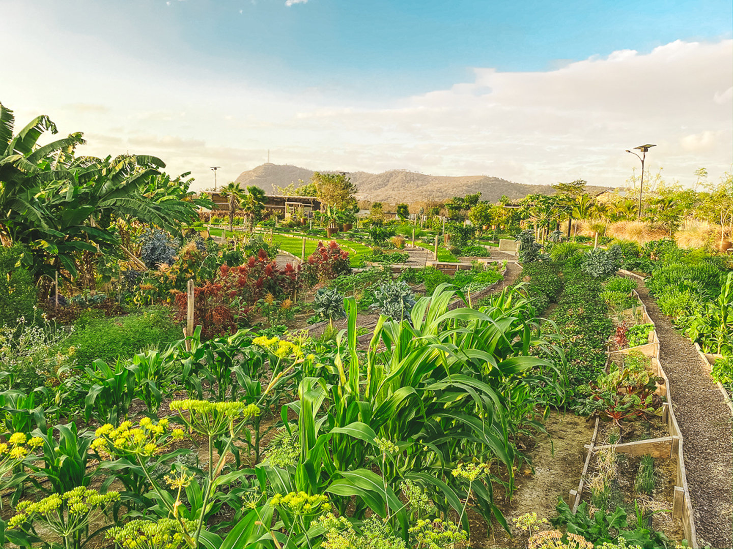 Huertos de árboles frutales, viveros, estaciones de camas elevadas, áreas dedicadas al cultivo hidropónico y microgreens, la apicultura y un invernadero central conforman la finca en sitio. La lista de cultivos presenta semillas orgánicas, semillas que no son genéticamente modificadas, y en conjunto con un intercambio único realizado con semillas del chef de tres estrellas Michelin Dan Barber.
