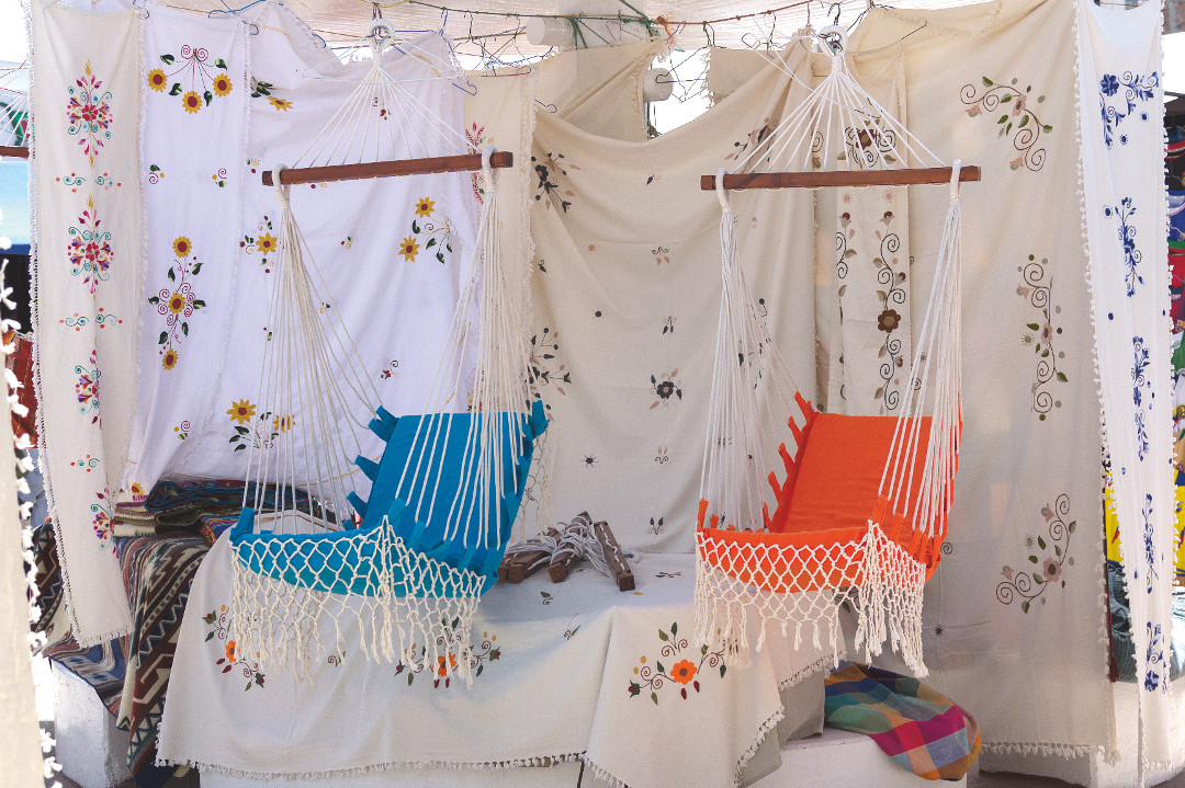 Entre corredores y colores en la Plaza se encuentra Luz María, una mujer de 65 años que no recuerda exactamente cuánto tiempo lleva asistiendo a diario a atender clientes del mundo entero. Destaca por su amabilidad, y porque a diferencia de la mayoría, ella se dedica únicamente a elaborar tapices muy coloridos, hechos a mano, de hasta 2,40m de largo. Es un trabajo tan detallado que a simple vista refleja la habilidad de la artesana. El precio promedio de cada uno es de $110, pero Luz María aclara inmediatamente que ofrece descuentos. Es un producto 100% artesanal, y bien vale lo que ella pide por él, ya que no hay réplicas y se demora 15 días en ser creado.