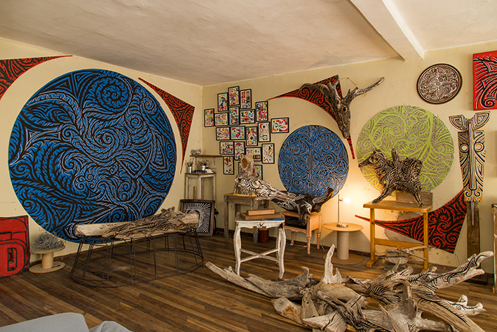 El taller de Pablo, siempre está en movimiento, en constante mutación. Acoge, da vida, y observa la puesta en acción de las técnicas del artista.