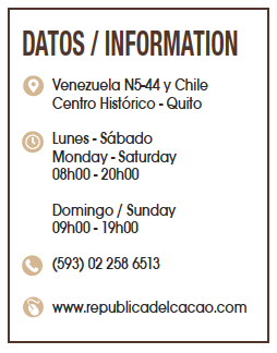 República del Cacao, como parte de sus lineamientos corporativos, busca posicionar al cacao fino ecuatoriano como uno de los productos que ofrece los más altos estándares para la gastronomía mundial de chefs pasteleros y chocolateros de renombre. “Hacemos nuestro chocolate localmente, pero se aprovecha globalmente”, asegura Gonzalo José Chiriboga, Gerente General de República del Cacao.