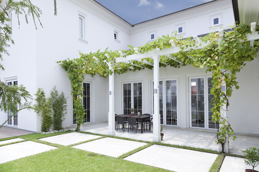 Esto es algo llamativo en un zona de Guayaquil donde las construcciones amplísimas son una constante y las casas parecen enormes palacios. Para Patricia, la prioridad era contar con áreas integradas y no con salones gigantes, fríos y distantes. Por ello, la sala y el comedor están en un mismo espacio que, con estrategias de diseño y buen gusto, se palpan independientes pero son parte de un todo que incluye un precioso deck exterior, conectado con ventanales que rodean el área y también dan acceso a una sala de estar en la parte posterior.
