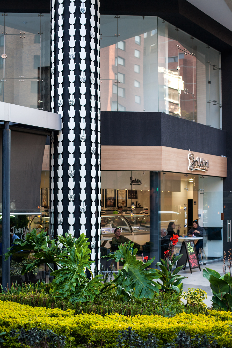 Para las hacedoras de este taller el tamaño de la obra no importa, no se trata de llenar espacios, sino de la calidad que conlleva una pieza. Tal vez por ello fueron elegidas para trabajar en la gran columna de uno de los edificios de Uribe&Schwarzkopf, recientemente inaugurado. Esta empresa les solicitó plasmar en su construcción una pieza de arte que alimente al paisaje urbano. Para ellas fue un reto, les habían limitado en cuanto a forma y tamaño, sin embargo, aquello les motivó. “Fue muy interesante, porque es una columna enorme, altísima. Nos dio pánico, pero después nos acomodamos a la idea. Fue un ejercicio saludable, un ejercicio de humildad porque no nos gusta que nos limiten. Aceptamos el reto y lo hicimos bien”.