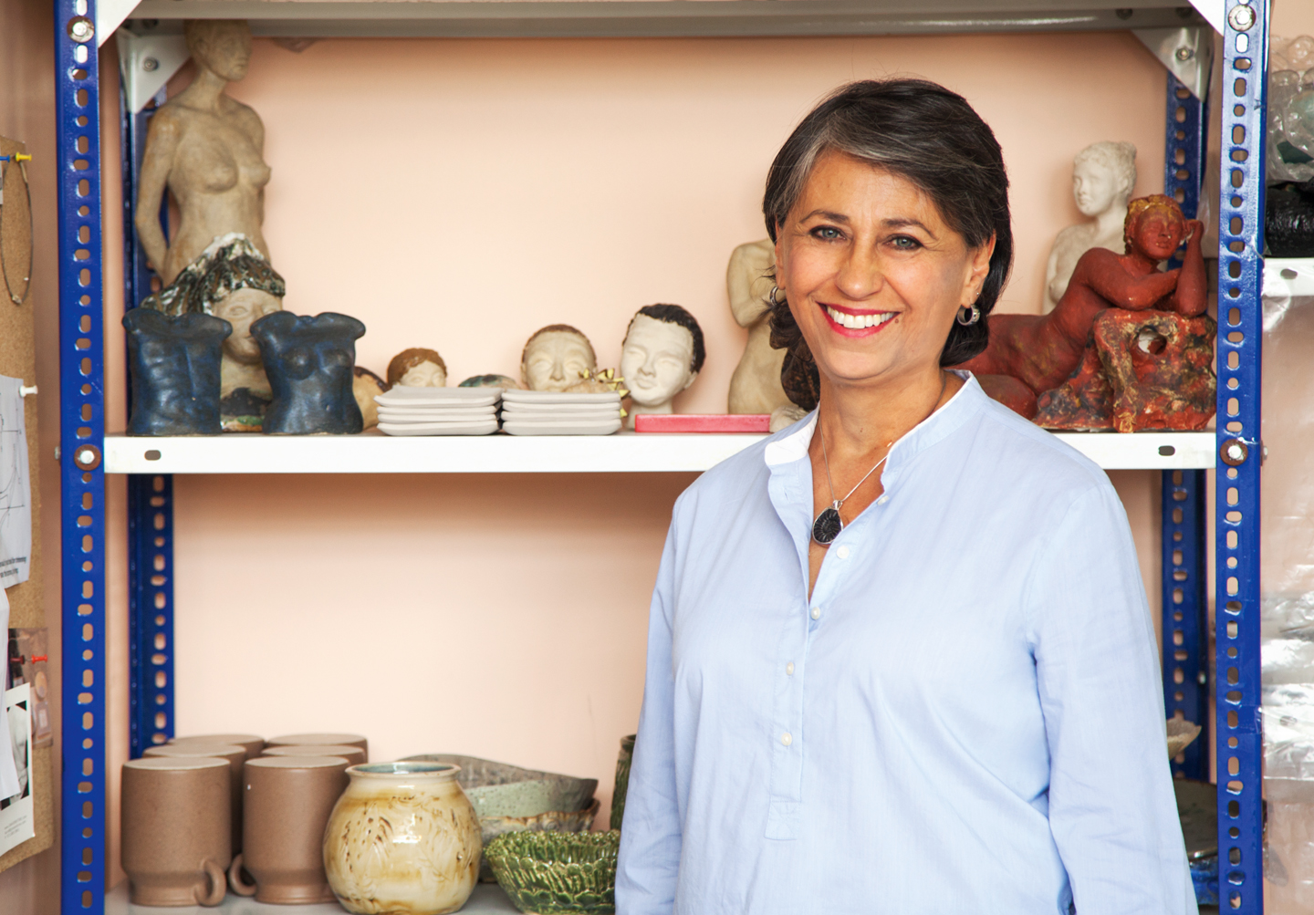 Paulina Arcos también ha trabajado desde siempre con sus manos. Estudió Bellas Artes en la Universidad Central, Historia del Arte, hizo restauración de obras y se graduó en la Escuela de Cerámica de La Moncloa, en Madrid.