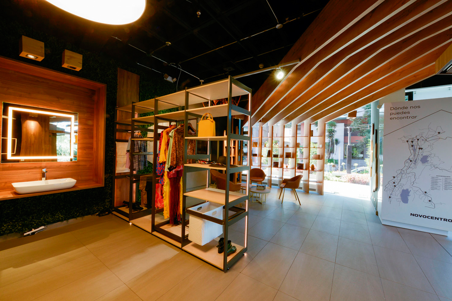 El espacio está concebido con 15 partners y cada uno tuvo una función específica en el proceso. La idea es siempre mostrar innovación, tendencia y diseño. Se exhiben muebles modulares de fácil uso y armado, con sistemas constructivos de gran versatilidad. En la biblioteca se aplicó un sistema de vigas en melanina que deja la naturalidad a la vista. Hay un selector 3D Pelíkano que permite ver distintos espacios, proyectarlos y cambiar los colores, planteando así un esquema de asesoría.