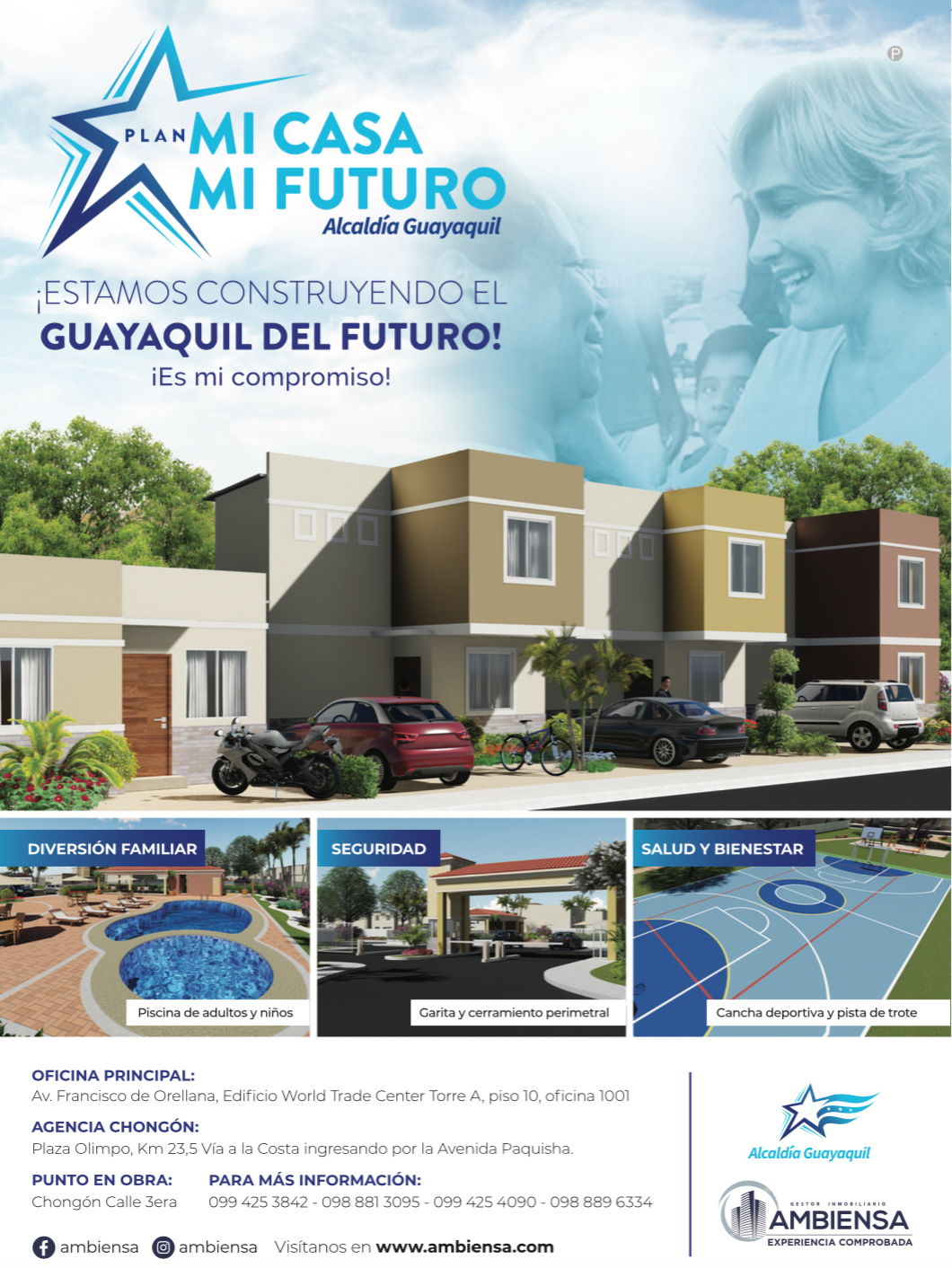 En febrero del presente año, el ilustre Municipio de Guayaquil firmó un convenio con Ambiensa S.A., promotora inmobiliaria que cuenta con amplia y sólida experiencia en el desarrollo de proyectos residenciales, para la implementación del Plan Habitacional Municipal “Mi Casa, Mi Futuro”.
