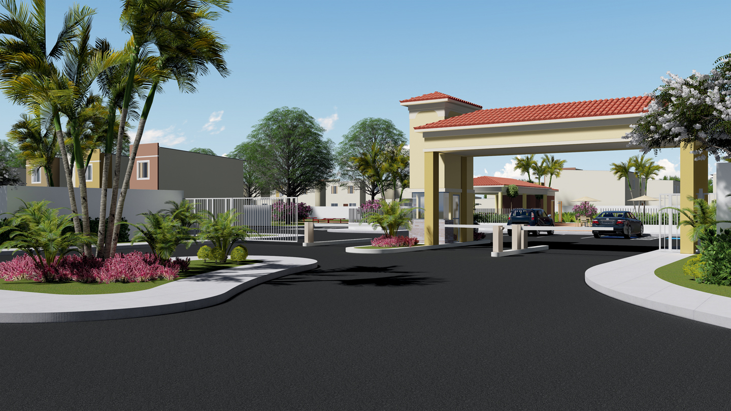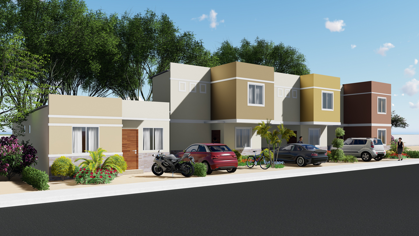 Se trata de viviendas unifamiliares de una y dos plantas, y de dos y tres dormitorios. Poseen una excelente distribución de espacios interiores que logran incorporar dos baños y medio, sala, comedor, cocina, y en el exterior un amplio patio y garaje delantero. Además, están diseñadas con sensores de movimiento que cubren la puerta, ventanas, patio y cocina; y controles para encender y apagar la luz en la entrada de la vivienda y en la sala.
