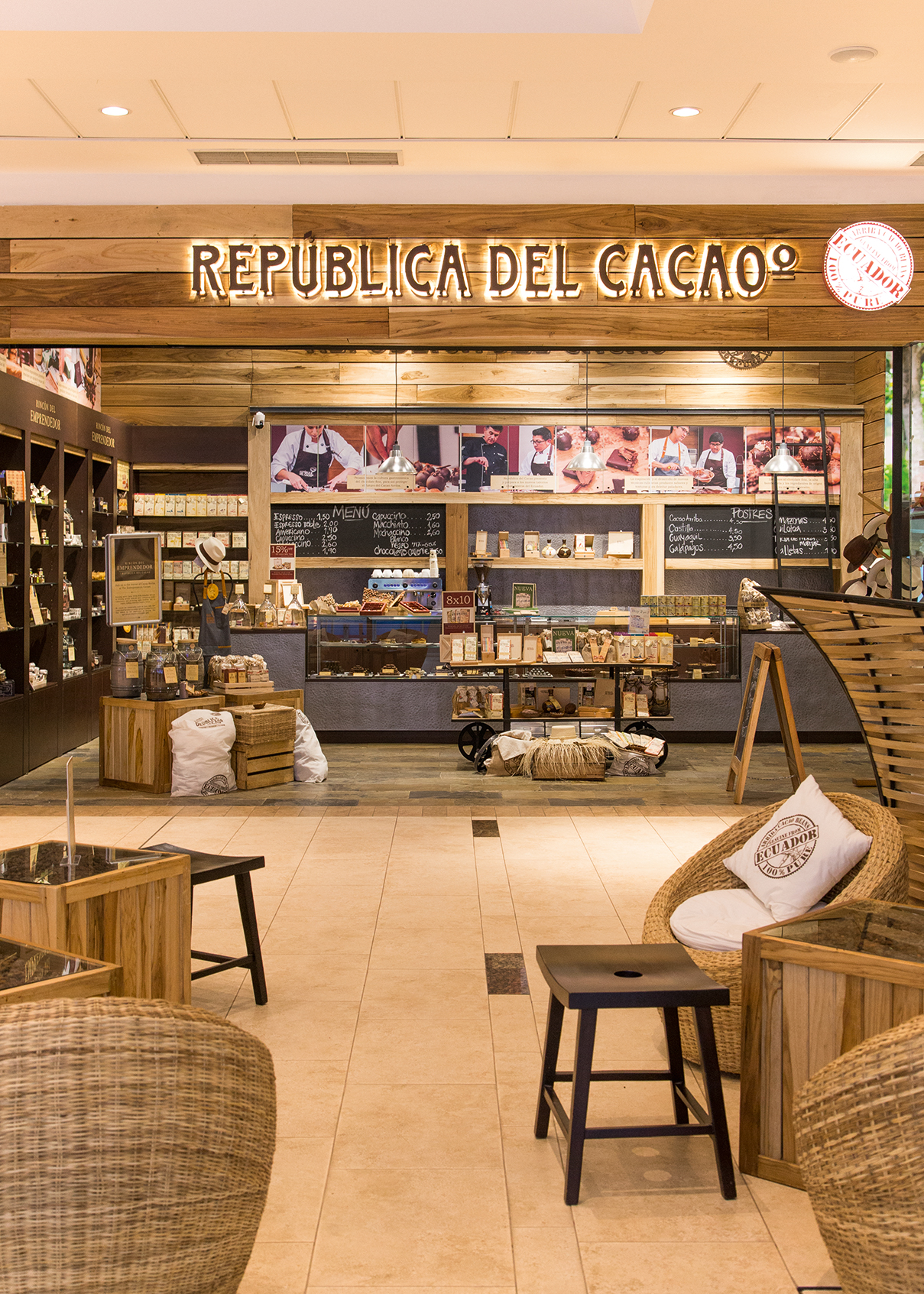 Ahora usted puede disfrutar las delicias del Taller del Cacao en la nueva Chocolate Boutique de República del Cacao en el SCALA SHOPPING. Además de ofrecer el amplio portafolio de barras y recubiertos de chocolate de República del Cacao, esta boutique es un espacio inspirador en donde los amantes del buen chocolate pueden disfrutar de las creaciones del Taller del Cacao acompañadas de una variedad única de bebidas de chocolate, frías y calientes. El SCALA SHOPPING es un “chocolate café”; un ambiente creado para las personas que buscan un lugar especial en donde juntarse con amigos o familiares y disfrutar de un buen chocolate o café y un postre excepcional. Además, su estilo rústico pero contemporáneo y su toque “vintage”, hacen de la Chocolate Boutique de República del Cacao el lugar ideal para que ocurran momentos inolvidables.