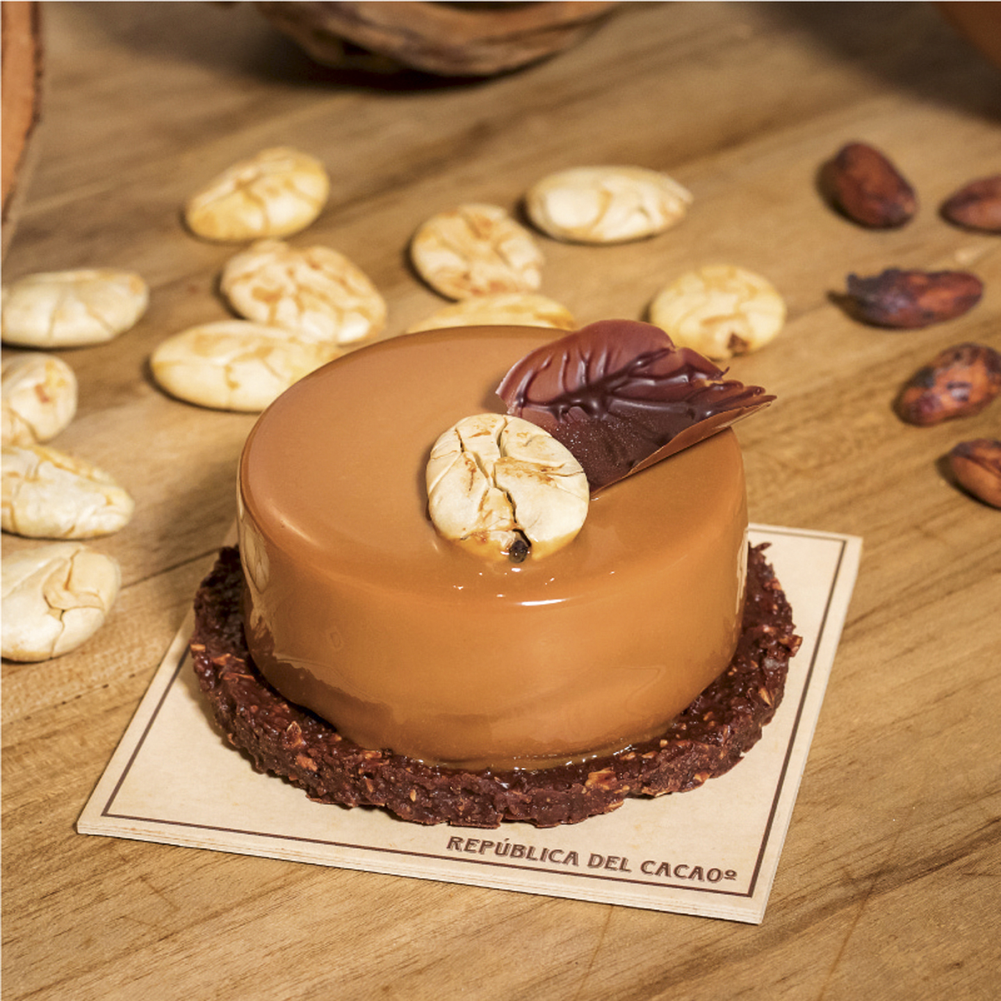 Compotas de mango, con delicadas notas de ishpingo y trocitos de piña, encofradas dentro de un molde de chocolate en forma de cacao dejan que la imaginación de la chef ejecutiva de República del Cacao nos lleve a la Amazonía. El sorbet de chocolate negro o el helado de chocolate blanco y jalea de maracuyá nos hace repensar las texturas y excelencia en un dulce frío y por último una taza de chocolate caliente nos envuelve en un manto de placeres y memorias que tan solo el mejor chocolate puede invocar.