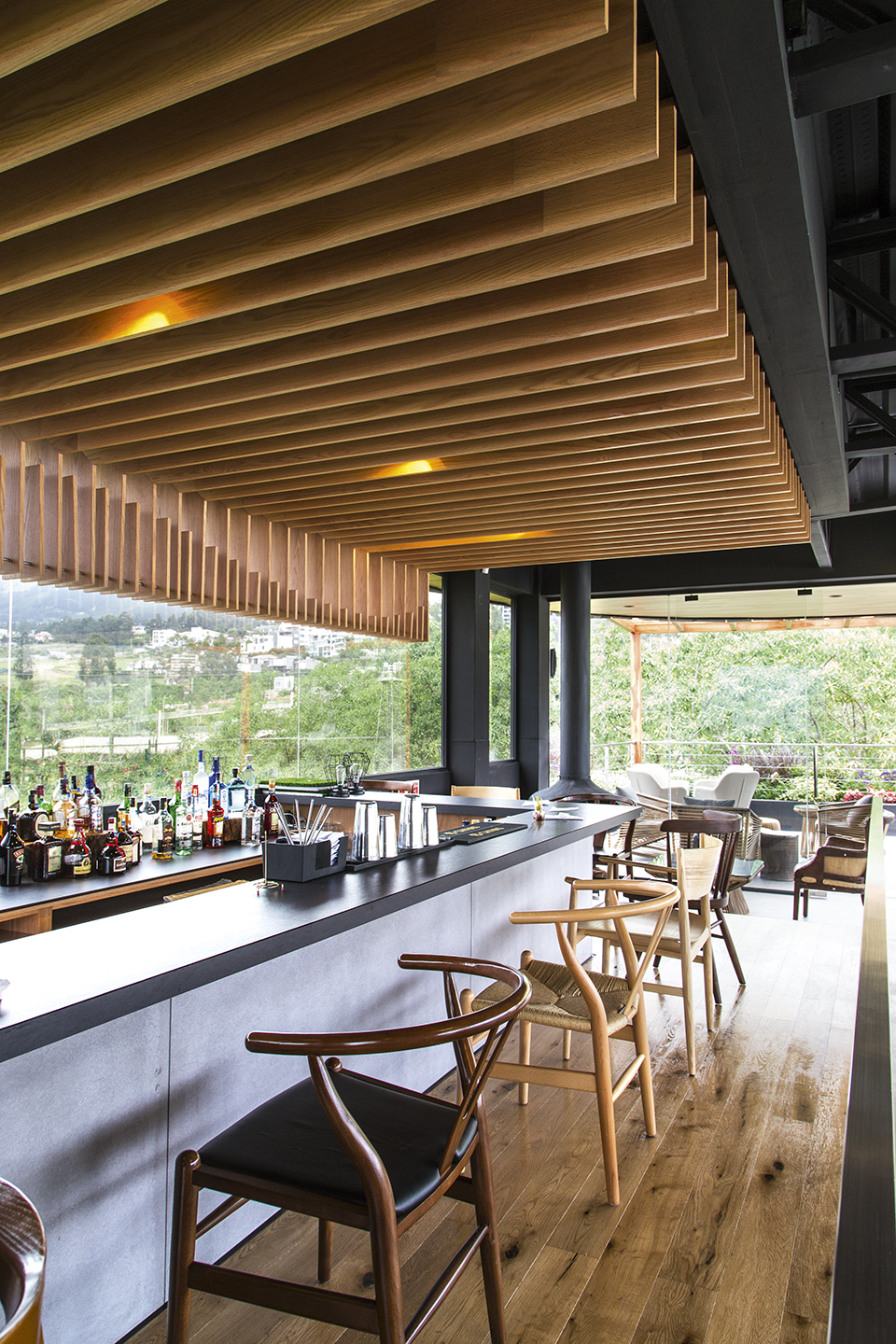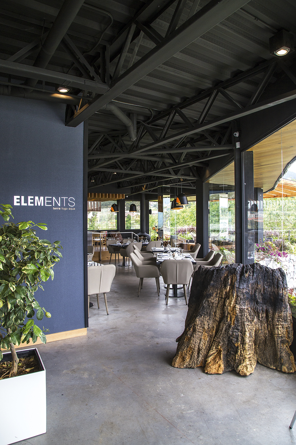 La calidez del ambiente es otra característica que hace único y especial a Elements. Se trata de un ambiente sobrio pero a la vez cálido, en donde la barra ocupa un lugar preponderante y la linealidad del diseño interior es complementaria a los dispersos, con elegantes muebles rústicos de las cuatro salas creadas para degustar bocaditos como: el ceviche de babaco y crocante de maíz; o los ñoquis de maduro con queso.