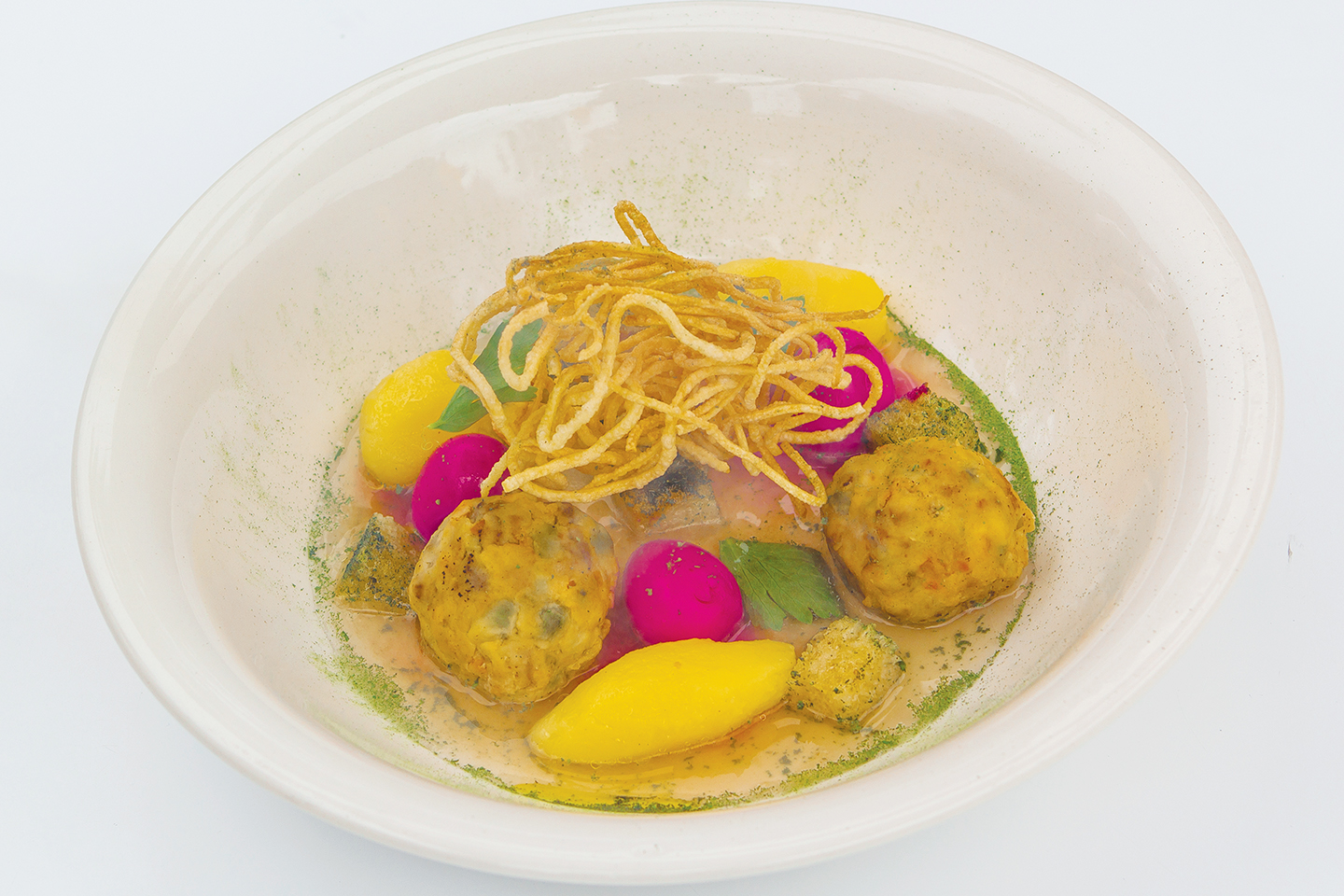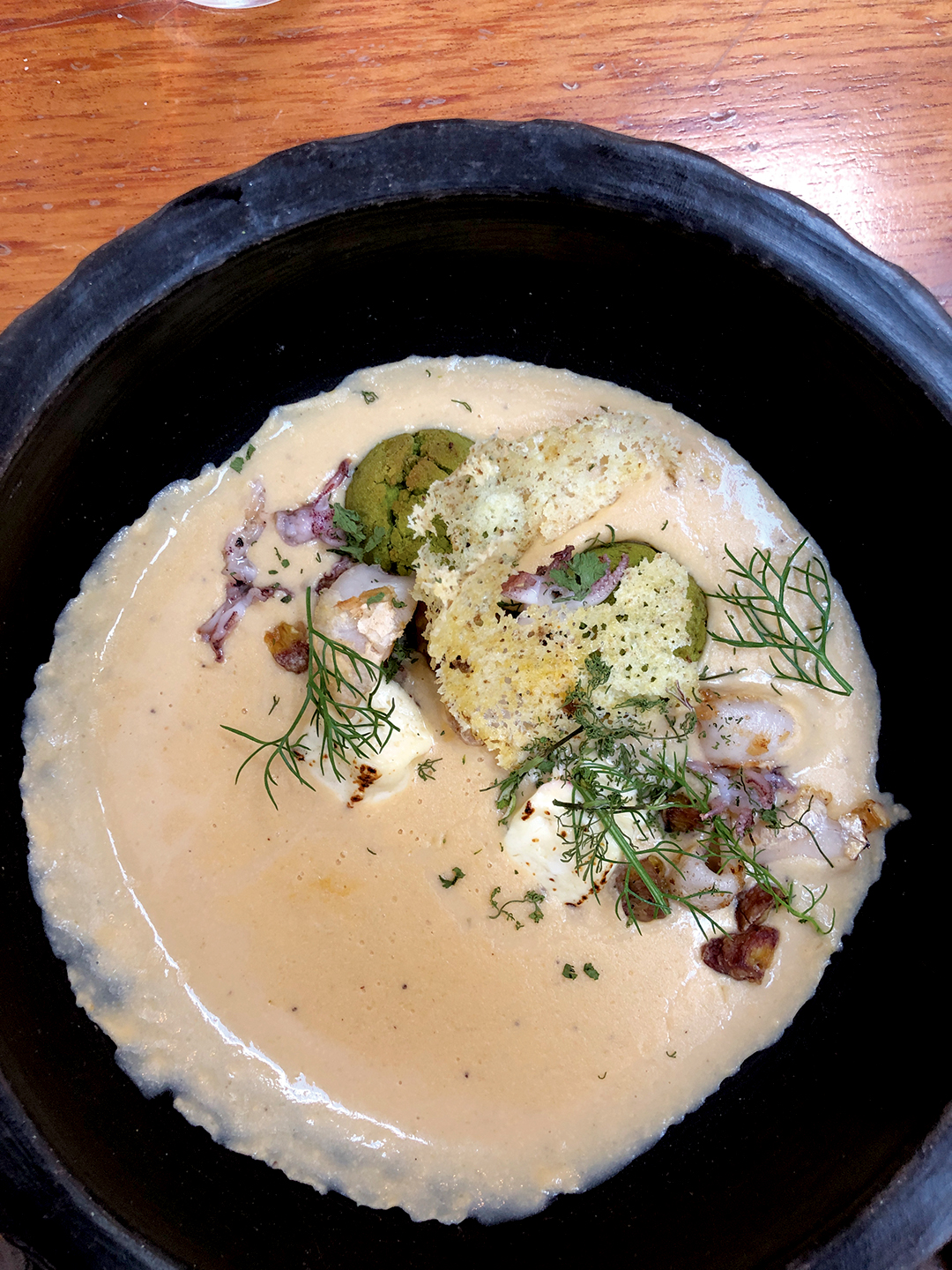 Lograr un resultado único y exquisito tiene sus desafíos: “Cambiar la mentalidad de nuestros clientes, muchos están acostumbrados a pensar que solo la cocina foránea es buena, hacer que la gente valore lo nuestro ha sido difícil; y también, equilibrar las recetas para que la gente no coma excesos de carbohidrato,” afirma Samuel. Lo reconozco, llegué con muchas ganas de comer uno de los platos típicos de la provincia de Loja: el repe, una sopa espesa y cremosa a base de plátano verde. Cuando supe que la propuesta de la carta tenía calamar, no me entusiasmó la idea; cuando lo probé, fue la mejor sorpresa para mi paladar.