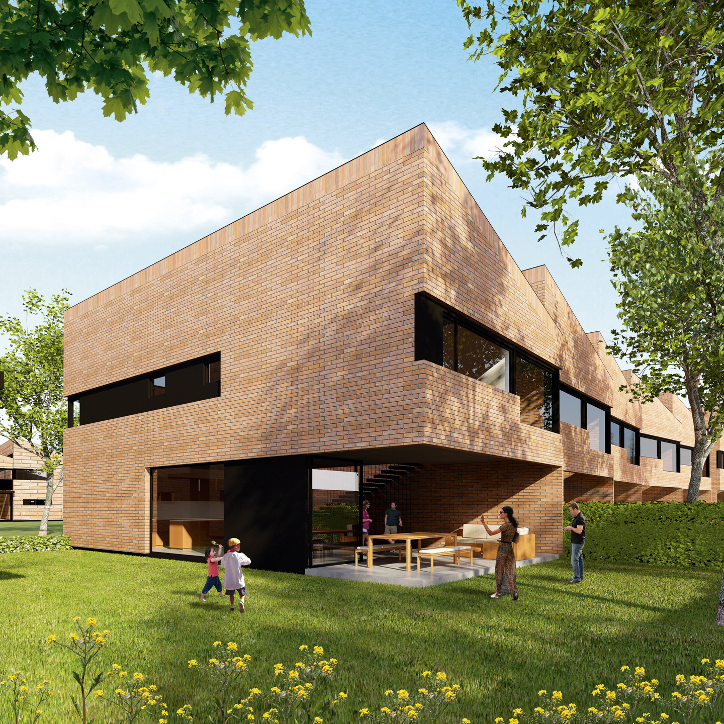 Hemos querido recrear un estilo de vida, en lugar de simplemente vender un lugar para vivir. Son casas unifamiliares, 28 en total, de 200m2 cada una, construidas en dos pisos. En el piso superior están tres habitaciones y una sala familiar; en la planta baja está la sala, comedor, cocina, baño social y un generoso porche techado con BBQ, que da hacia el jardín privado. Cada casa tiene dos parqueaderos subterráneos y una bodega.