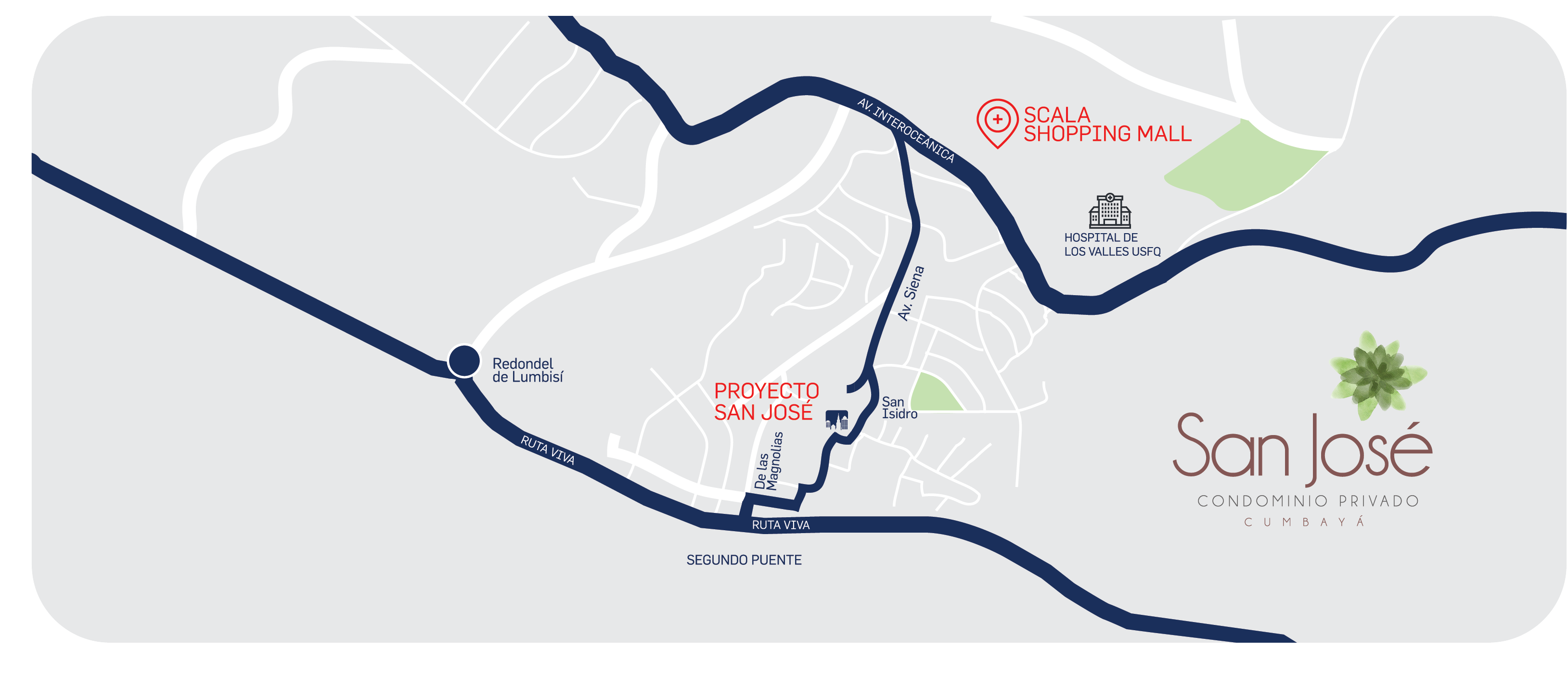 San José está perfectamente orientado con nuestra filosofía corporativa, cual es la de dar mayor y mejor calidad de vida a las familias ecuatorianas. En todos nuestros proyectos buscamos que las casas tengan un precio por m2 inferior a la media de la zona, y que dentro de ese precio incorporemos mejores características y condiciones superiores a las que ofrece el mercado. Nuestra sala de ventas está ubicada en donde se construirá el proyecto, porque es necesario visitarlo, vivirlo, para sentir la buena energía que emana el terreno.