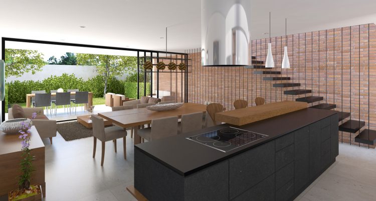 Sin columnas interiores. Cada casa es un módulo rectangular, debajo de cada una hay dos estacionamientos que corresponden a cada vivienda, y el proyecto está planteado desde un módulo que nace en el subsuelo. La ventaja de eso es justamente que la estructura hacia arriba está en las paredes que separan una vivienda de otra, y por lo tanto no hay ni una sola columna dentro de las casas. Esto es un gran atributo porque convierte a la planta abierta en un espacio muy flexible. Además, entre las casas habrá doble pared para evitar la contaminación auditiva, y en el piso superior estamos usando ladrillo como elemento constructivo por sus excelentes propiedades acústicas.