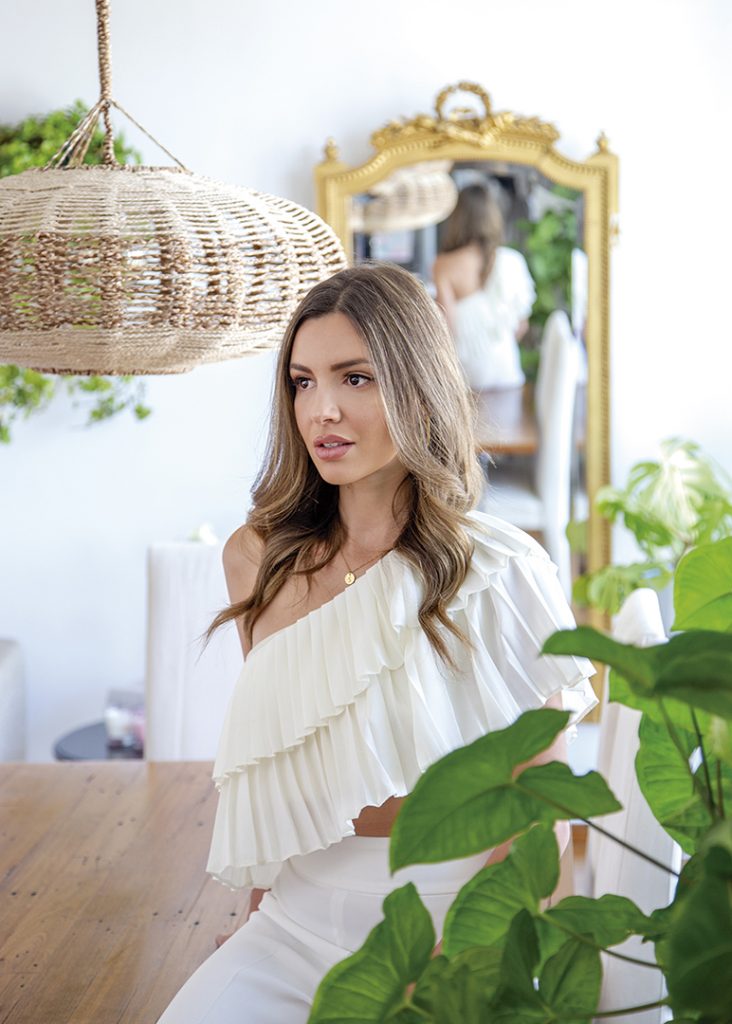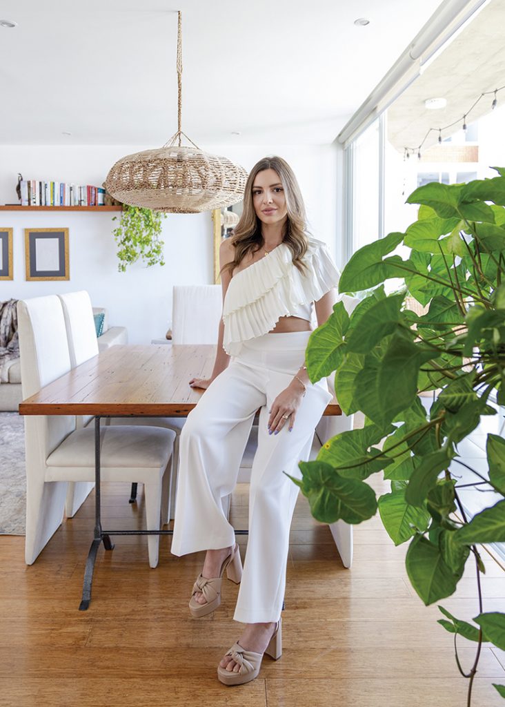 Si hay algo que reconocer en Sara, es que es extremadamente perfeccionista. Su perfeccionismo se evidencia en su sentido de lo estético. Basta ver su cuenta de Instagram. ¡Y su departamento! Vive en el sector de la González Suárez con su esposo Simón Pérez. Imperan los tonos neutros en paredes y mobiliario. La paleta de colores, en ciertas piezas decorativas, mantiene una tonalidad tenue, casi pastel. Destacan las distintas texturas, como la mesa del comedor de madera raw, la de la sala de hierro y mármol, un gran espejo dorado que da amplitud al espacio social. Los cojines y tapices tienen cada uno su propia sensación al tacto. Si hubiese que calificar su estilo, rondaría por una combinación de minimalismo, con mucha estética clásica y contemporánea.