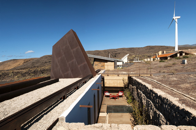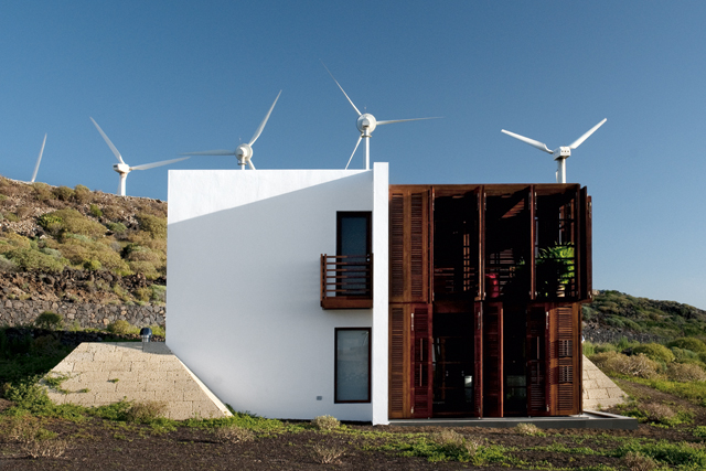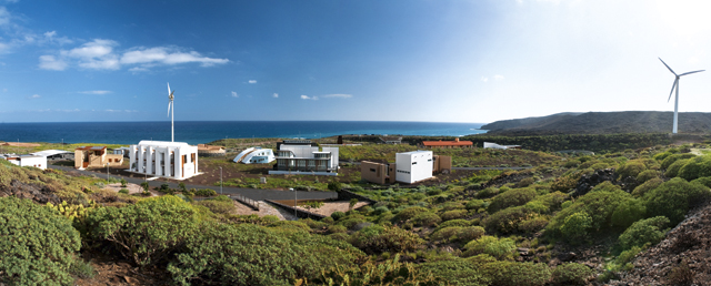 Uno de los proyectos en los que el instituto ha tenido que trabajar más duro es el Laboratorio Bioclimático. Se trataba de poder investigar a escala real el comportamiento de un grupo de prototipos de viviendas, incluyendo la posibilidad de autoabastecimiento energético. Un largo proceso comenzó en 1995, cuando se convocó el concurso internacional para la selección de los proyectos. María Delgado, arquitecta del ITER, nos explica las condiciones de partida: “En el concurso se pedía una vivienda unifamiliar aislada, con una superficie construida aproximada de 120m2 y para 4/5 personas. Tenía que diseñarse con principios bioclimáticos e implementar paneles solares y fotovoltaicos obligatoriamente, y pequeños aerogeneradores de manera opcional”. Finalmente se presentaron cerca de 400 proyectos, procedentes de 38 países, de los cuales cuatro fueron los premiados y 25 los finalmente construidos.