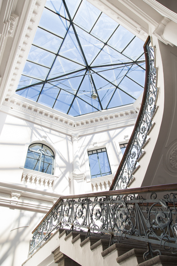 Lo primero fue ocuparse de la recuperación e interrelación entre los tres patios, a partir de la Plaza Grande. El patio norte se recuperó manteniendo su geometría, las arquerías originales y conservando su carácter con el revestimiento de piedra. La propuesta más audaz fue la de cubrir este patio con una estructura piramidal de hierro y vidrio. Su condición de elemento de corte contemporáneo amenazaba la esencia del estilo arquitectónico del edificio.