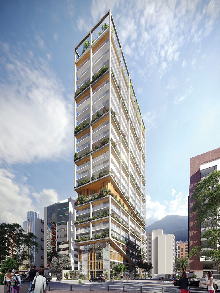 El diseño de Epiq propone priorizar el espacio verde y “traer” el parque hasta el edificio, permitiendo así que los residentes compartan las grandes terrazas plantadas dispersas a lo largo de su altura a diferentes niveles. Su especial fachada fusiona elementos de nuestra cultura, originando paisajes con texturas cálidas y naturales, respetando los elementos que conforman nuestra esencia, como los colores de cada atardecer, la flora y fauna andina o los tejidos de paja entrelazados, típicos de Ecuador.
