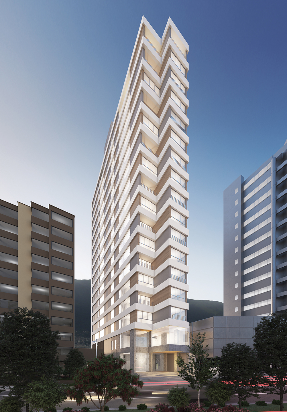 Sobre la Av. Naciones Unidas se construye una torre de 24 pisos, moderna y elegante, que se eleva hasta el cielo sobre el Parque La Carolina. El diseño es del Arquitecto Carlos Zapata, ganador del premio Council on Tall Buildings (CTBUH) por el Bitexco Financial Tower (Vietnam), señalada entre los 50 edificios de mayor innovación en el mundo.